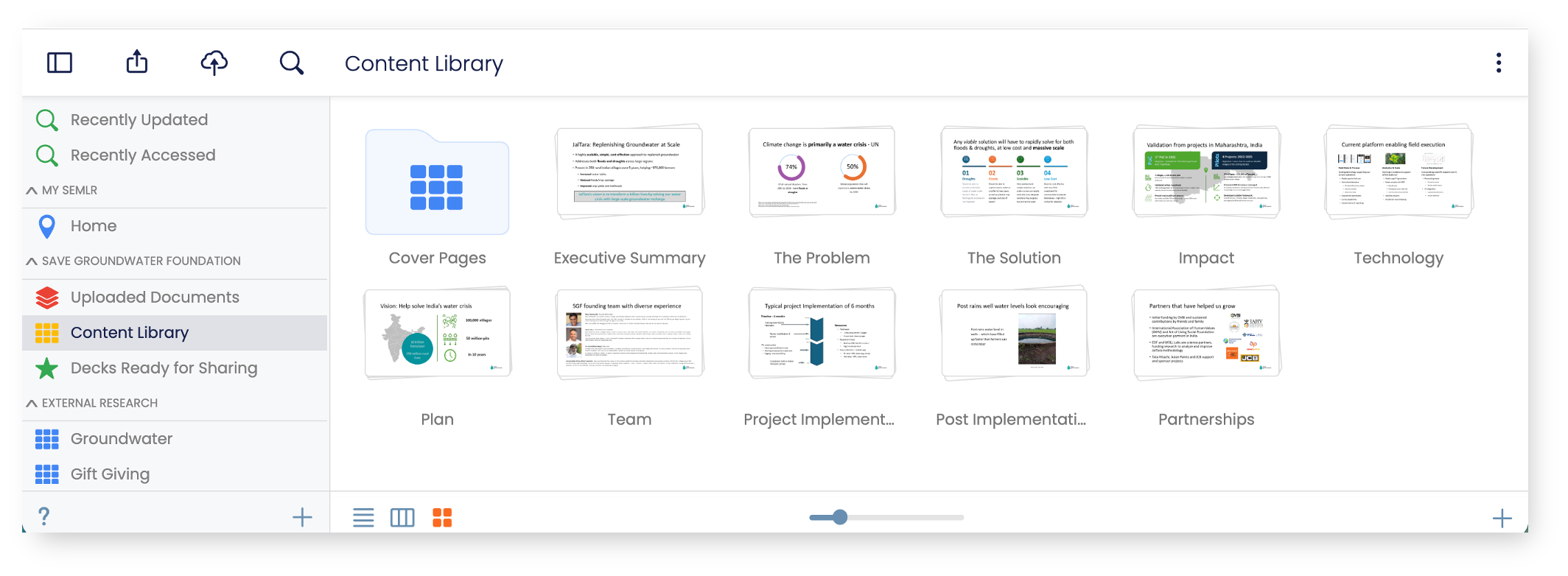 Our focus is content; the knowledge that is captured in presentations, documents, images and video. Semlr unpacks the content, allowing it to be remixed into new documents, and then discovered, shared and accessed online. Built on innovative technologies for intelligent search, content analysis and dynamic assembly, Semlr is a powerful platform for enterprise collaboration.